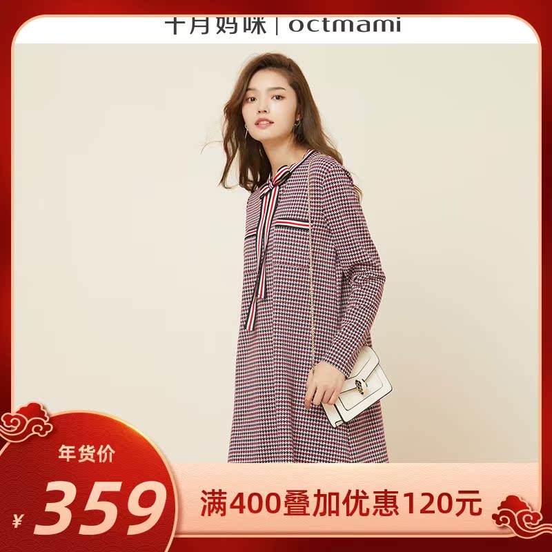 【专柜同款】十月妈咪孕妇秋冬装外穿不显怀针梭相拼孕妇连衣裙