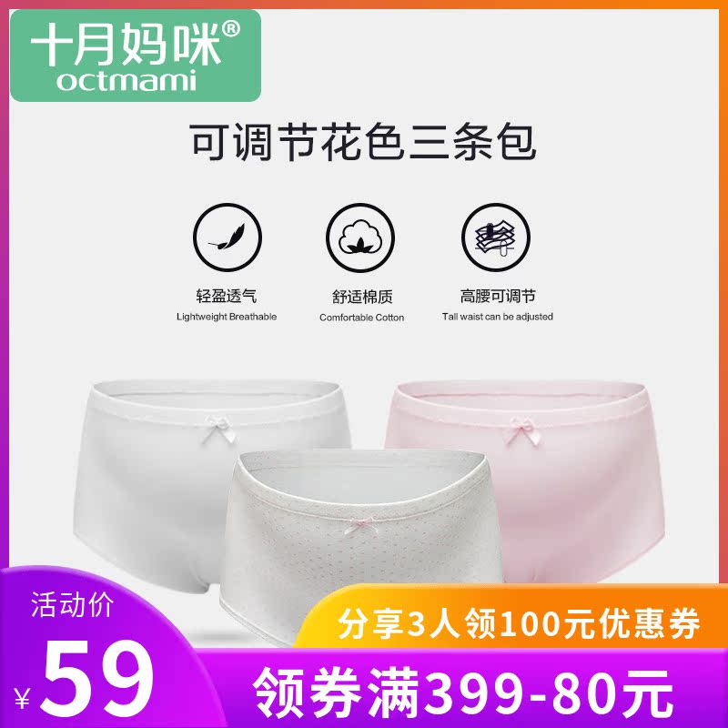 十月妈咪孕妇低腰内裤纯棉裆孕晚期早期中期新款女内衣春秋款3条
