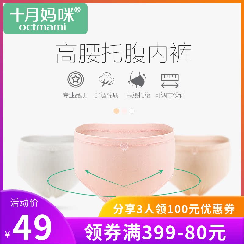 • 十月妈咪母婴专营十月妈咪孕妇内裤纯棉托腹怀孕期大码高腰孕妇内裤3条装四季12/4
