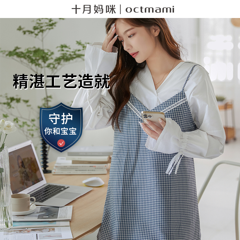 十月妈咪母婴专营【专柜同款】十月妈咪格纹银梭织防电磁波吊带怀孕期防辐射孕妇装