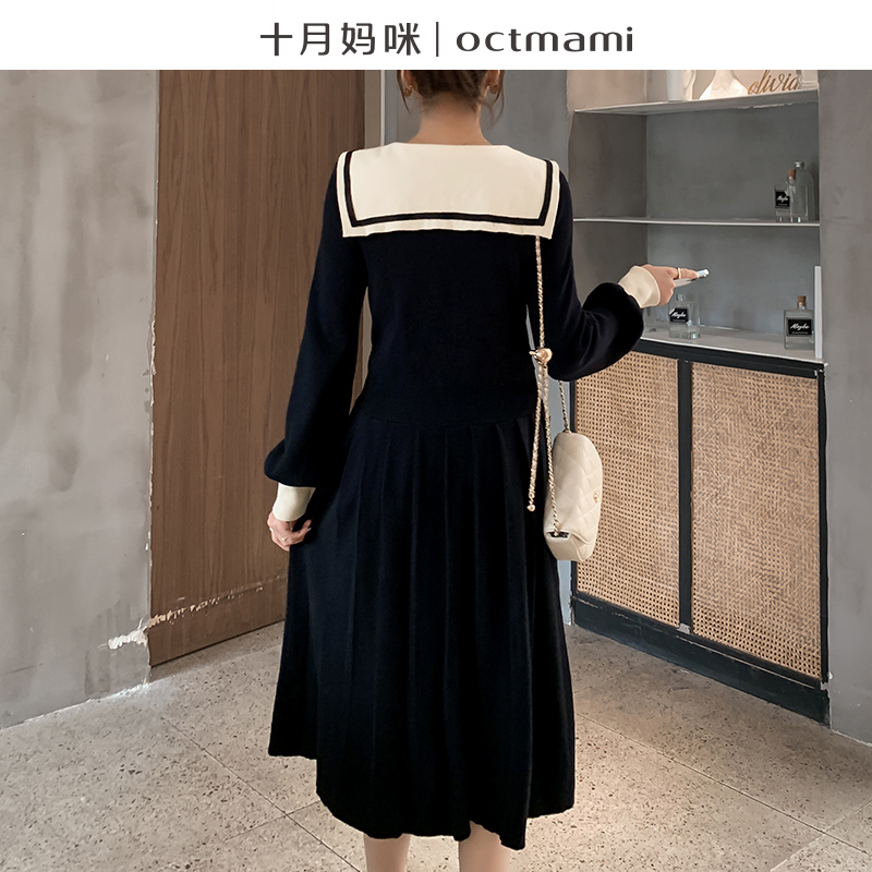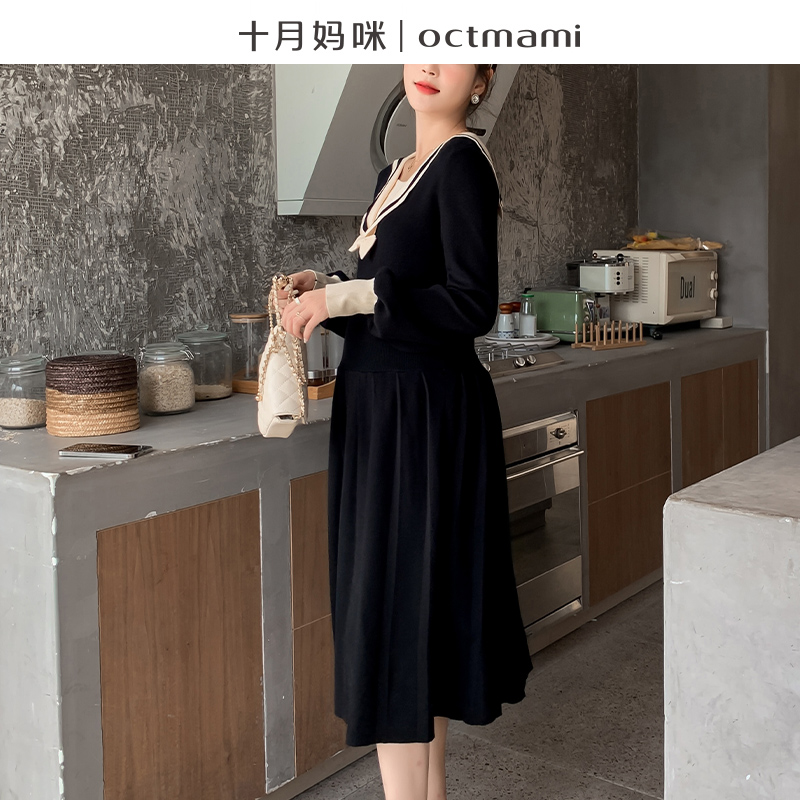 【新品】十月妈咪新款孕妇夏季休闲外穿时尚针织条纹短袖裙