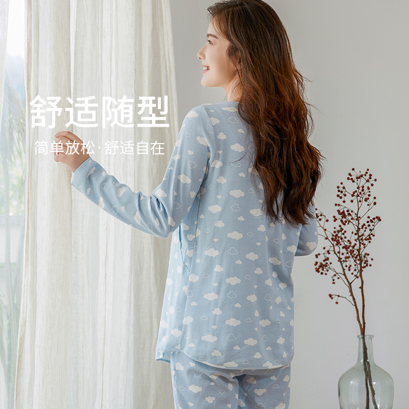 十月妈咪母婴专营十月妈咪月子服夏天产后孕妇哺乳睡衣套装针织印花可哺乳家居套装
