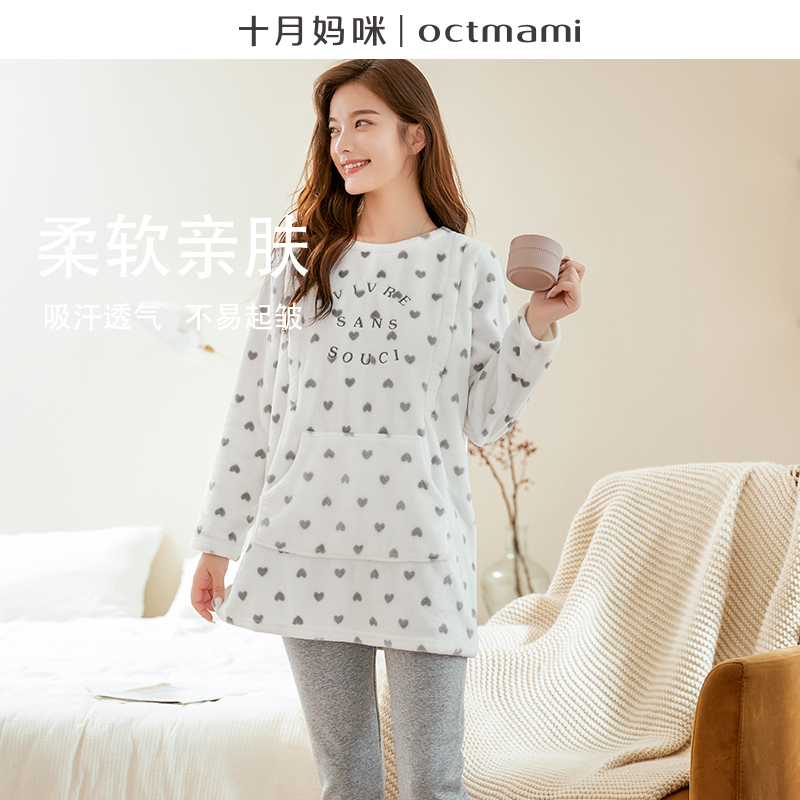 • 十月妈咪母婴专营【新品】十月妈咪秋冬法兰绒可哺乳家居套装孕妇睡衣月子服套装01/4