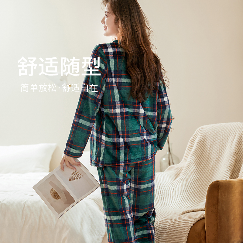 十月妈咪母婴专营十月妈咪秋季新孕妇装款法兰绒格子可哺乳家居套装产后月子服套装法兰绒格子可哺乳家居套装
