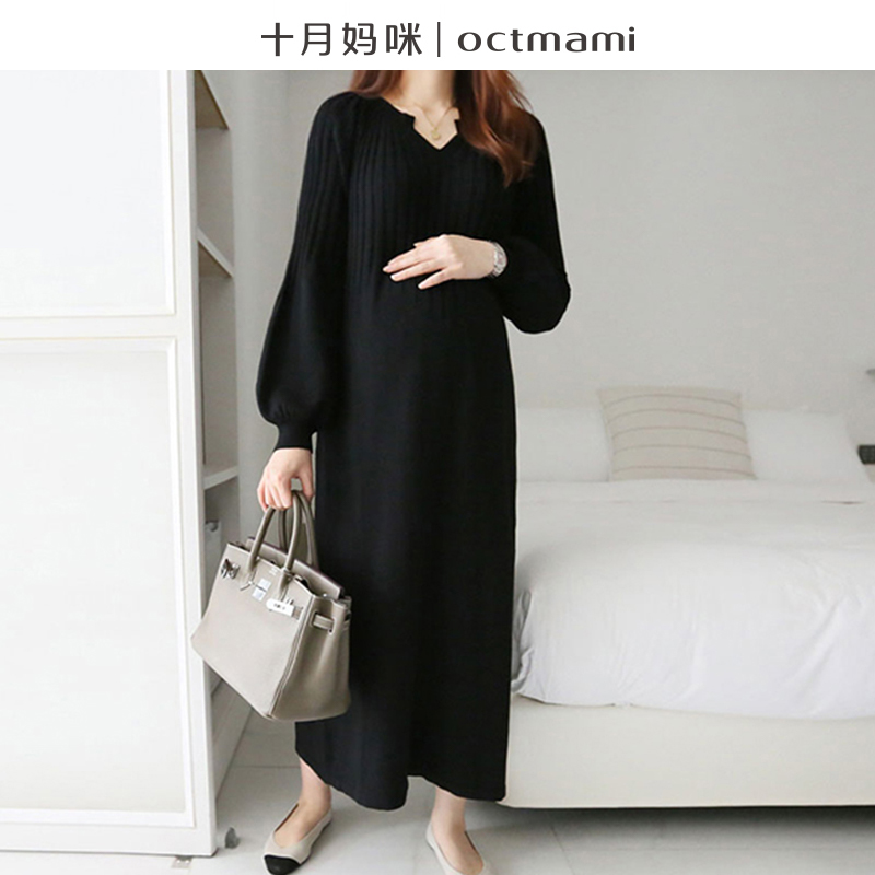 • 十月妈咪母婴专营【专柜同款】十月妈咪孕妇秋装外穿不显怀时尚毛衣秋冬孕妇连衣裙23/4
