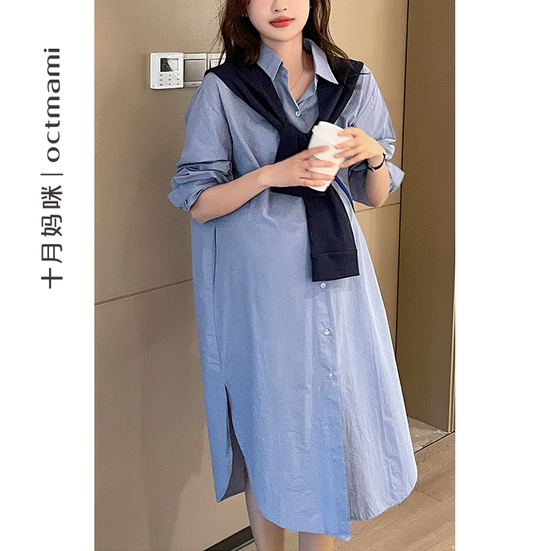 • 十月妈咪母婴专营【新品】十月妈咪孕妇连衣裙夏季薄款休闲外穿时尚带披肩衬衫裙子23/4